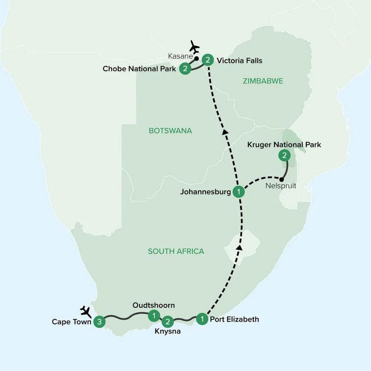 Depart Knysna and continue along the Garden Route near Plettenberg Bay. Enjoy an Insider Experience, then continue along the Storms River Mouth and through the Tsitsikamma Forest on the way to Port Elizabeth. Later, check in to your hotel and spend the rest of the day at leisure. Stay: Port Elizabeth, Boardwalk Hotel (B)