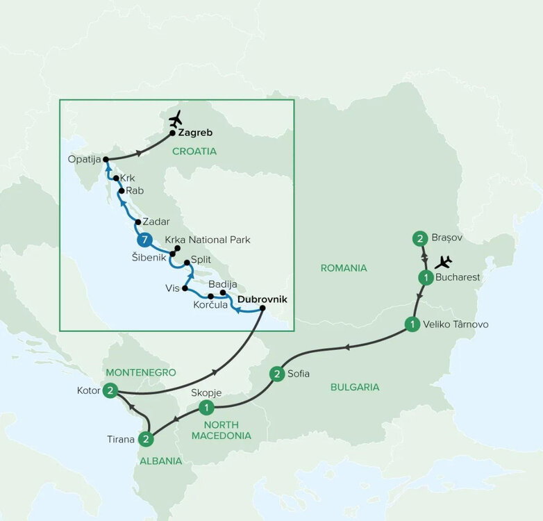 Begin the day with a memorable Insider Experience. This evening, come together with your fellow travellers for a Farewell Dinner, marking the conclusion of your Balkan journey. (B/D)