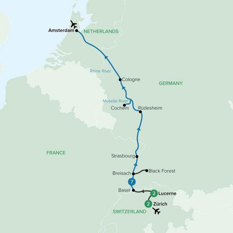 Be met on arrival in Zürich and transferred to your hotel. This evening, meet your fellow travellers and tour director for a Welcome Reception at the hotel. Stay Two Nights: Crown Plaza Zürich