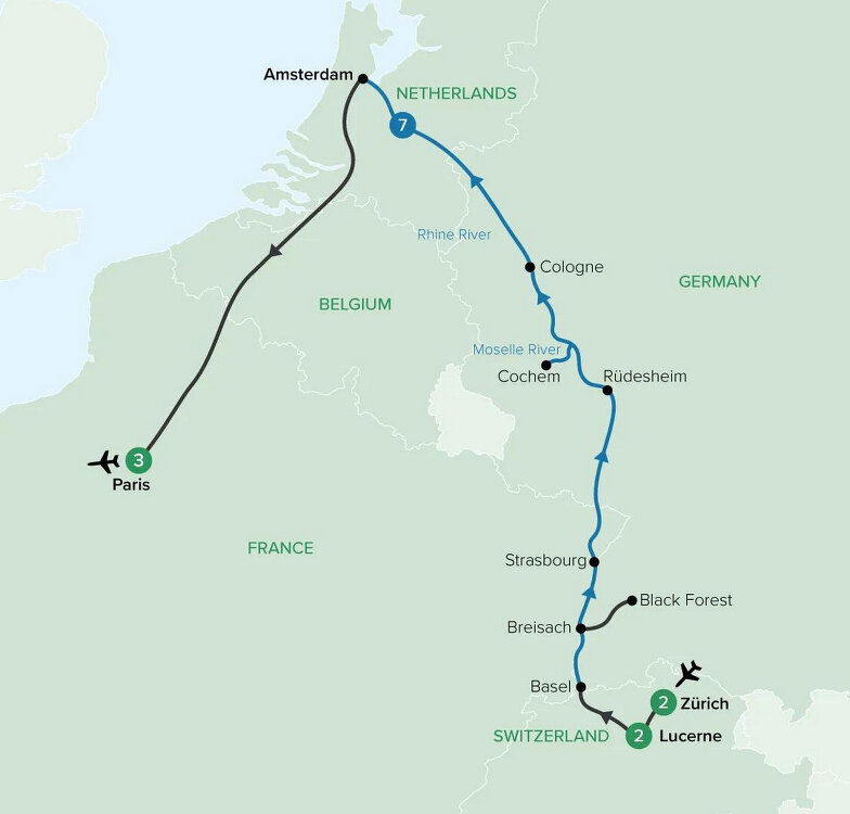 Be met on arrival in Zürich and transferred to your hotel. This evening, meet your fellow travellers and tour director for a Welcome Reception at the hotel. Stay Two Nights: Crown Plaza Zürich