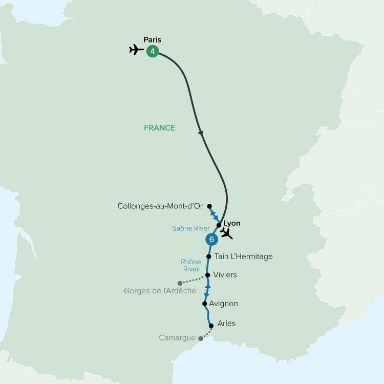 After breakfast, it is time to depart your Rhône River cruise. Be transferred to the airport for your onward flight. (B)