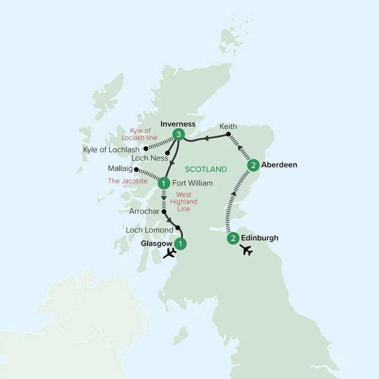 Depart Aberdeen this morning and board your train northwest towards Inverness. En route, alight in the whisky town of Keith in the heart of Speyside, Scotland's most celebrated whisky-producing region. Visit one of the area's historic distilleries, where a guided tour reveals the whisky-making process - from malting and mashing to distillation and maturation - followed by a tasting of the region's smooth, distinctive style. Stay Three Nights: Columba Hotel Inverness by Compass Hospitality (B)