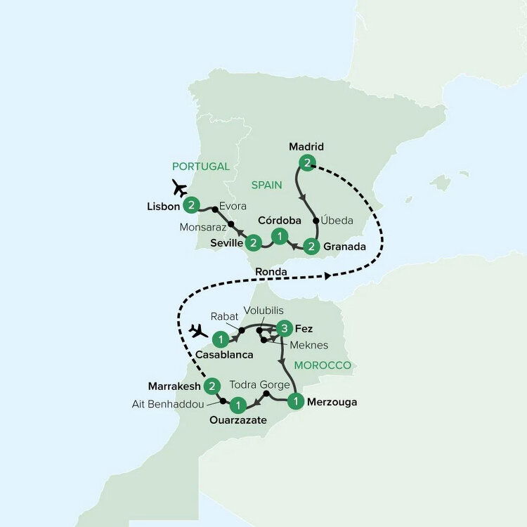 Start your day with a guided discovery of Madrid. Packed full of art museums, fabulous restaurants and leafy green spaces - not to mention Europe's largest palace - Madrid offers locals and visitors alike plenty of things to do. See major sites including the Museo del Prado, the Royal Palace of Madrid, Plaza Mayor and El Retiro Park. The remainder of the afternoon is yours to explore at your own pace. This evening, join your fellow travellers for an authentic Welcome Dinner. (B/D)