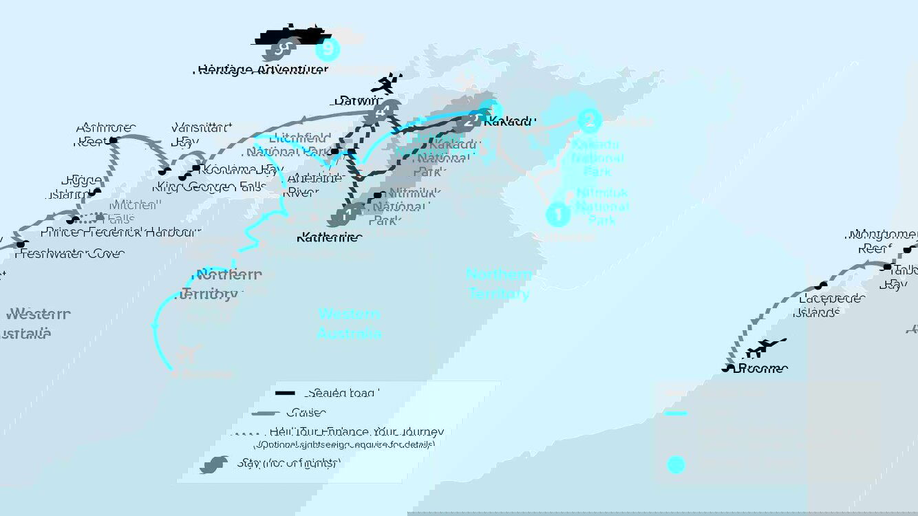 After breakfast, enjoy a relaxed morning at leisure. In the afternoon, be transferred to your premium expedition ship, Heritage Adventurer, your home for the next nine nights. Get to know your fellow travellers at a relaxed dinner on board this evening. Stay Nine Nights: Heritage Adventurer (B/D)