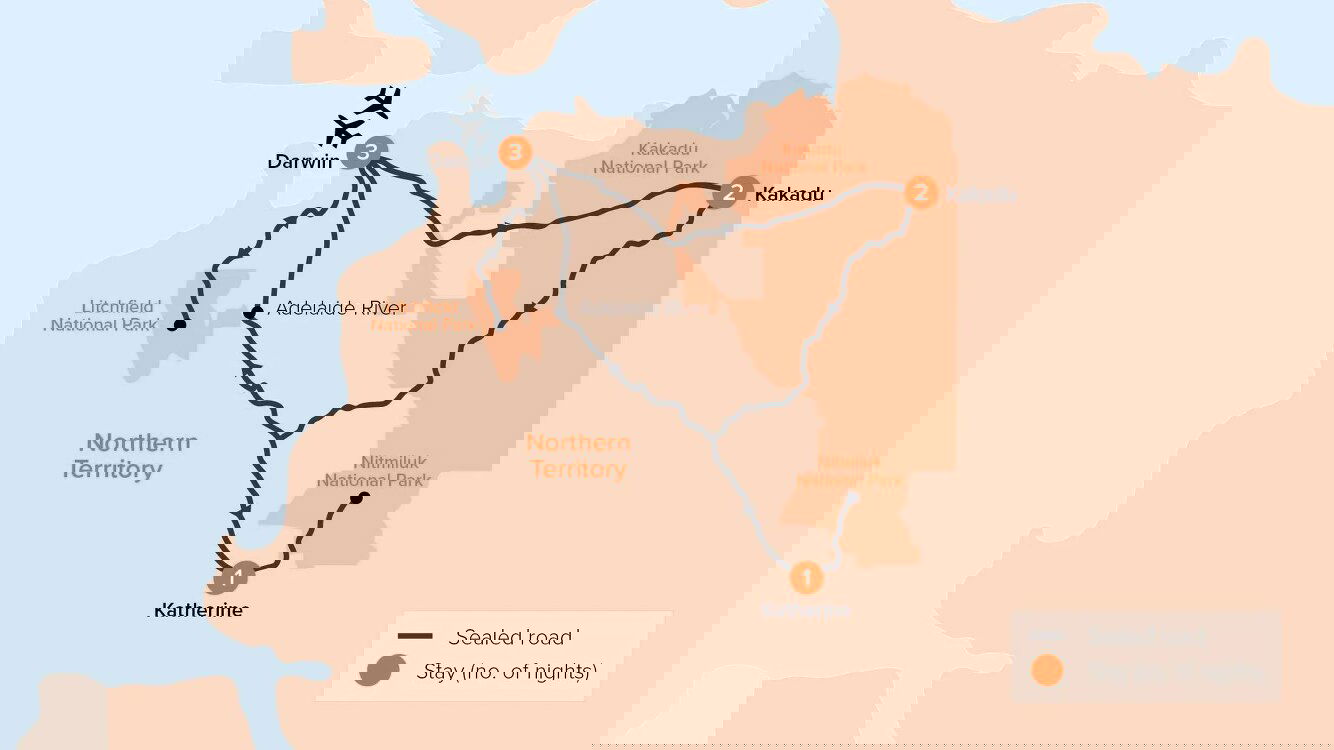 This morning, we farewell Kakadu National Park and travel to the beef grazing town of Katherine. Northeast of Katherine lies the stunning Nitmiluk National Park, with its spectacular gorges carved into the Arnhem Land plateau by the Katherine River. After your day of exploring, return to your accommodation. Stay: Katherine, Contour Hotel (B/D)