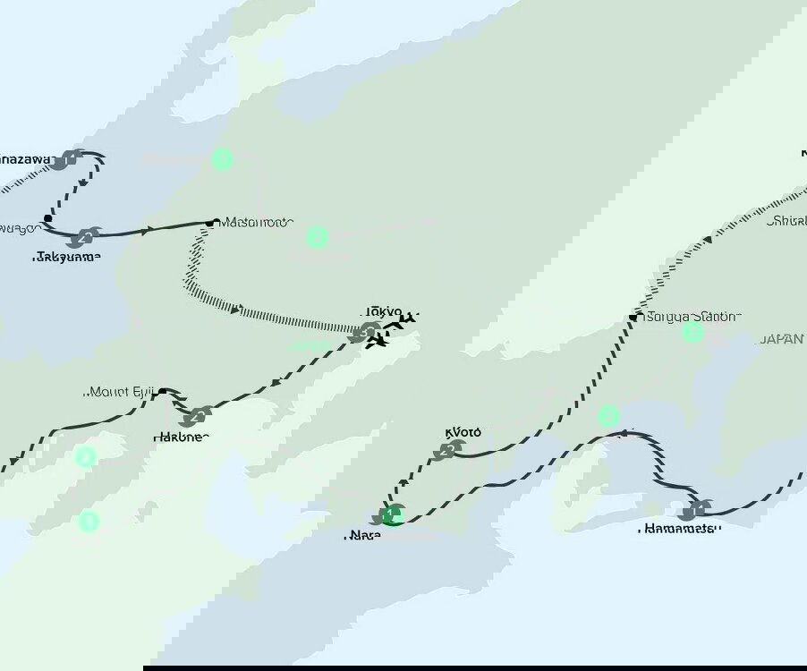 Begin your day with a walk along a segment of Old Tokaido Road. Then, embark on a boat ride on Lake Ashi (also known as Ashinoko) - a natural caldera formed after a major volcanic explosion some 3,000 years ago. Afterwards, transfer to a ropeway and cable car for a ride to the top of Owakudani Geothermal Valley, where you might catch a glimpse of Mount Fuji. After enjoying time at Owakudani, return to your hotel for free time, where you might like to visit some of the local museums and galleries in Hakone. (B/D)