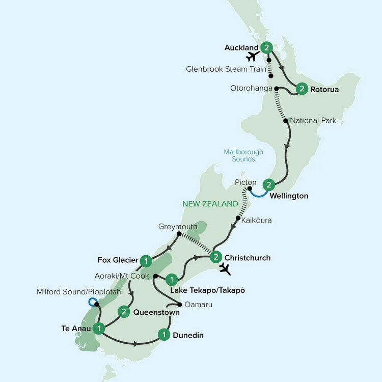 Today begins with an Insider Experience. Afterwards, return to Auckland by coach. (B)