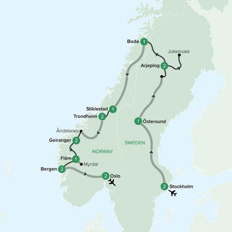 Travel by coach from Arjeplog to Bodo in Norway, a journey that offers stunning scenic vistas. Upon arrival, visit the Norwegian Jekt Trade Museum, an open-air museum showcasing beautifully preserved traditional buildings and an impressive collection of historic boats. Spend the afternoon at your leisure, exploring the charming town or simply relaxing, before enjoying a delightful dinner at your hotel. Stay: Thon Hotel Nordlys Bodo (B/D)