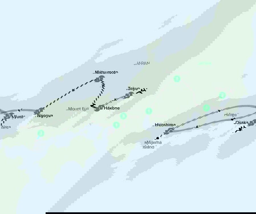 This morning, travel to Mount Fuji, arguably Japan's most distinctive landmark, for your Insider Experience. Later, travel to the alpine town Matsumoto to spend the rest of the day at leisure. Stay: Matsumoto, Hotel Buena Vista (B)