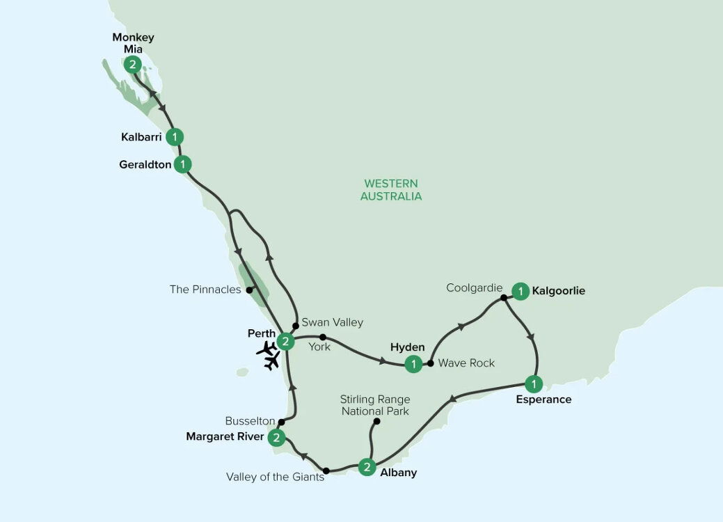 Journey to Coolgardie, the site of Western Australia's original gold rush. Continue to Kalgoorlie, where more than half of the gold mined in Australia is sourced, and uncover the rich history of the city's mining heritage at the Museum of the Goldfields. Then, take a town tour of Boulder and visit the Super Pit Lookout, where you may get to see a working mine site in action. Stay: Plaza Hotel Kalgoorlie (B/D)