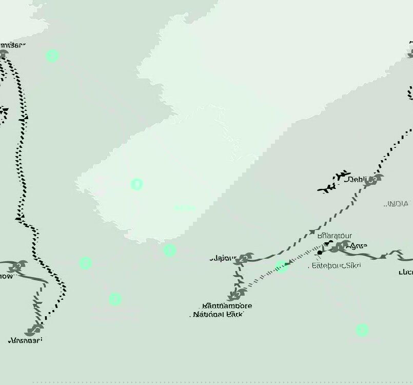 Today, board your flight to Amritsar, the location of the spectacular Golden Temple and the centre of Sikhism. This northwestern city is an integral pilgrimage site where people travel across the world to bathe in the holy waters of Amrit Sarovar surrounding the Golden Temple and commemorate the holy Sikh scripture within. This evening, visit the Golden Temple to delight in the moving Palki Sahib night ceremony. Stay Two Nights: Taj Swarna, Amritsar (B)