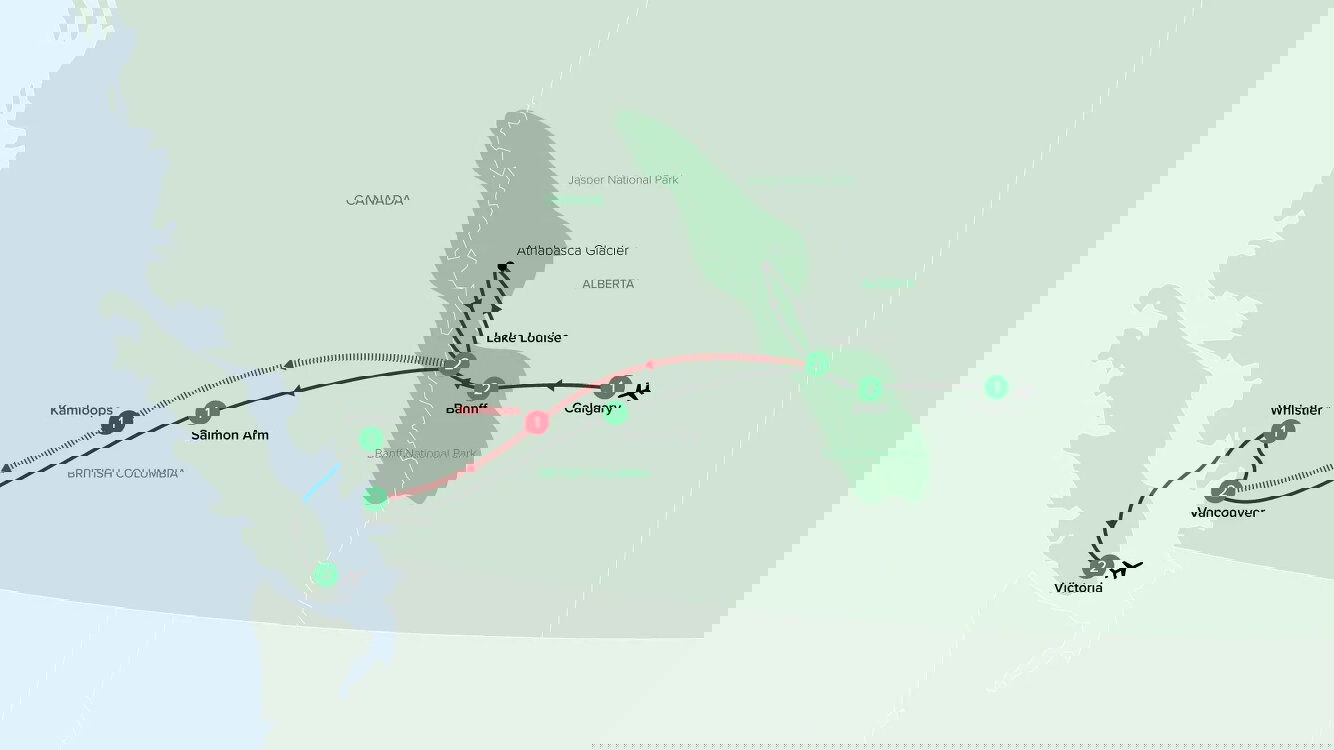 This morning, depart for beautiful Banff National Park. On arrival in Banff, enjoy a sightseeing tour to get to know the town's stunning surroundings. Stay Two Nights: Banff Park Lodge (B/D)