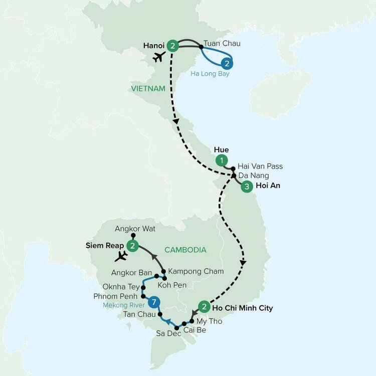 Your Vietnam and Cambodia journey comes to an end after breakfast with a transfer to Siem Reap - Angkor International Airport for your onward flight. (B)