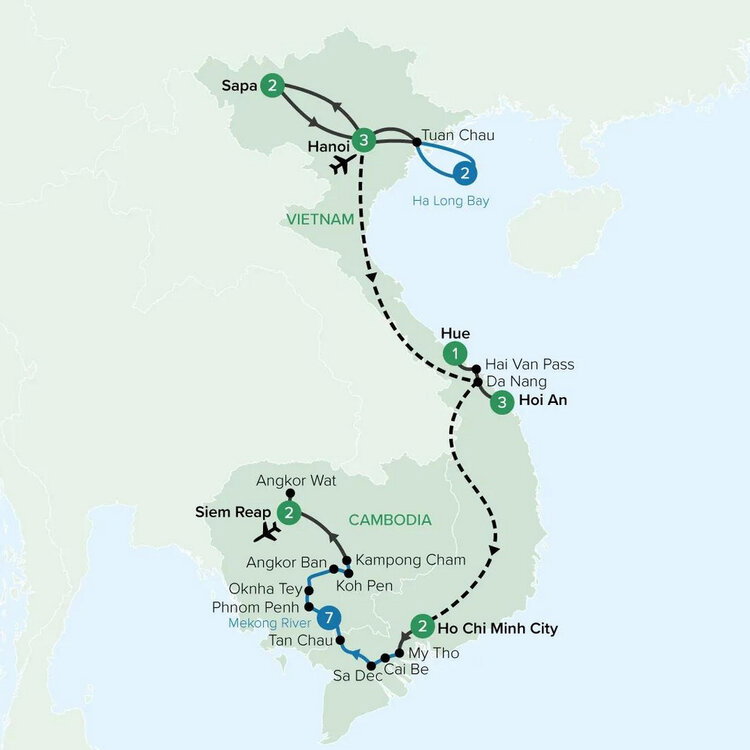Your Vietnam and Cambodia journey comes to an end after breakfast with a transfer to Siem Reap - Angkor International Airport for your onward flight.