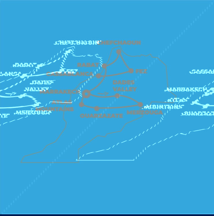 Welcome to Morocco! Once you arrive at your hotel you'll have the day to roam, meet with the group and set off to discover your first taste of Morocco