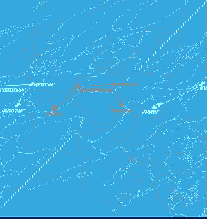 Book online and enjoy exclusive savings on TruTravels 9 Day Europe by Rail - Paris to Prague. Want to tick off the bucket list spots, and hidden gems in some of Europe's best cities? We'll maximise your time so you'll leave with your heart, belly and your camera roll FULL! Europe can be overwhelming so let us do all the heavy lifting so you can sit back, relax and explore the world's best cities in 9 epic days! This adventure is the best way to explore Europe in a sustainable way! Offering a seamless and scenic travel experience. From Paris to Prague, with stops in Amsterdam and Berlin inbetween, read more you'll see the sights, taste the pastries and experience the epic nightlife Europe has to offer too...what are you waiting for? Your dream euro summer is just a few clicks away...