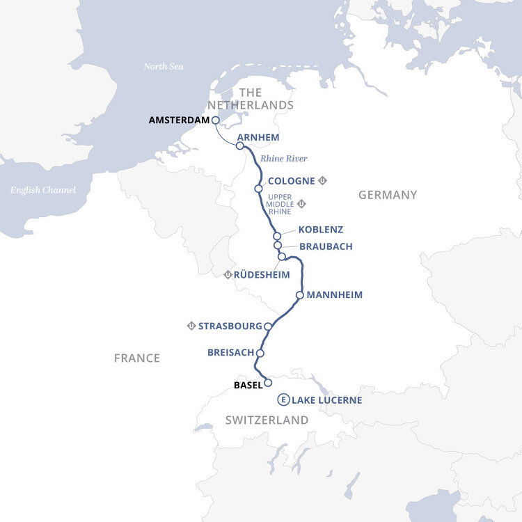 Check out of the hotel. If you have arranged a Uniworld departure transfer, you will be transferred to Amsterdam Airport Schiphol for your flight home. (B)