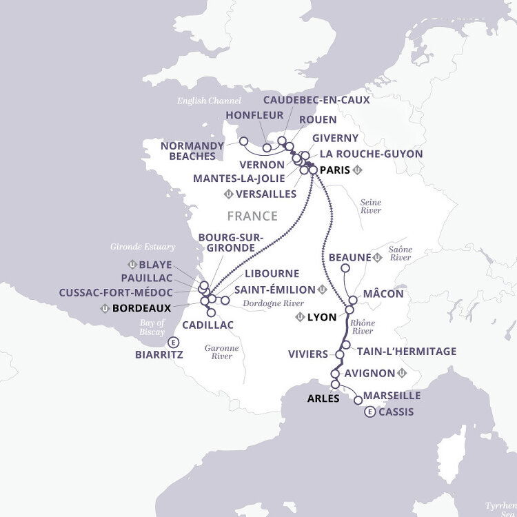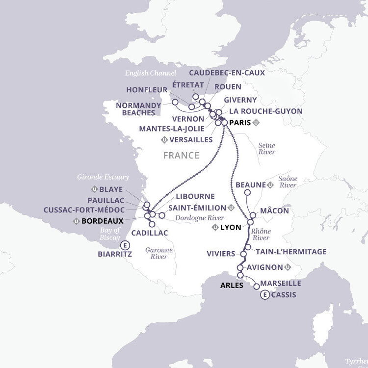 Arrive at Bordeaux-Mérignac International Airport. If you have arranged a Uniworld arrival transfer, you will be greeted by a Uniworld representative and transferred to the ship. (D)