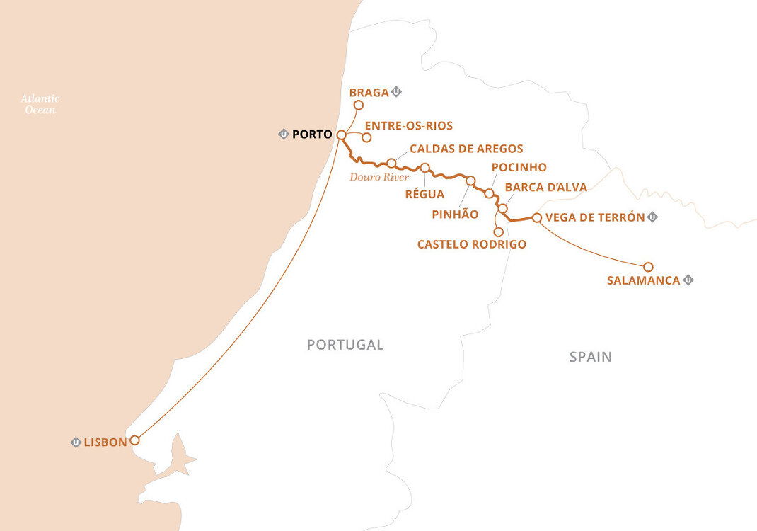 If your cruise/tour package includes a group departure transfer or if you have purchased a private departure transfer, you will be transferred to Lisbon Portela Airport for your flight home. (B)