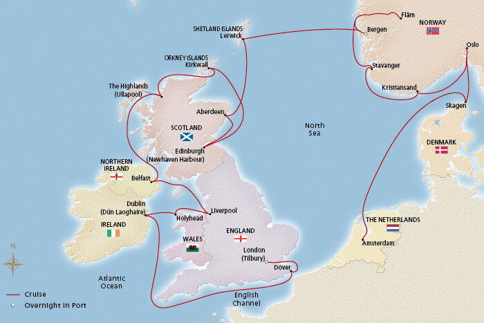 Cross the North Sea, where Vikings sailed as they established colonies on Scottish islands, coastal France and beyond.