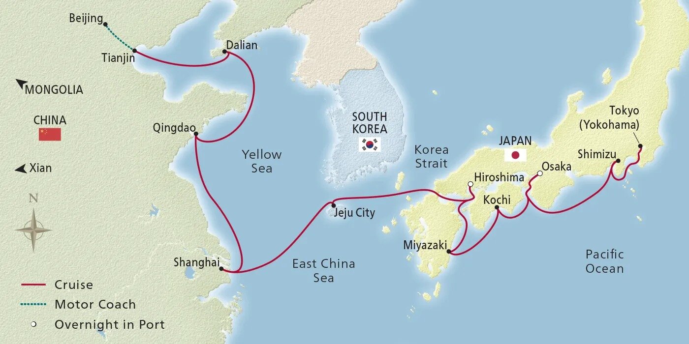 Traverse the waters of the historic Yellow Sea, once the stage for the Russo-Japanese War of 1904–1905, during which both empires vied for dominance in the region. Enjoy the amenities of your ship as you sail. Perhaps take a breath of fresh air on a brisk walk around the Promenade or begin your day with a workout in the well-equipped Fitness Center.