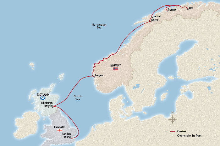 Hinnøya Island is Norway's largest coastal island and is famed for its diverse landscapes and natural beauty. Harstad's history is showcased at the Trondenes Historical Center, tracing the lives of locals from the Stone Age to the present day. The town lies 155 miles above the Arctic Circle and is known as the “Pearl of Vågsfjorden,” providing a gateway to explore the nature of northern Norway. Visitors can discover stunning fjords, admire majestic mountains and during the winter months, set out in search of the wonderous aurora borealis as she graces the nighttime skies.