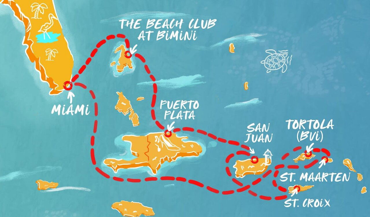 The Beach Club at Bimini is a private destination exclusive to Virgin Voyages guests. Located in the Bahamas, Bimini Island is known for its long white sand beaches and crystal clear water.