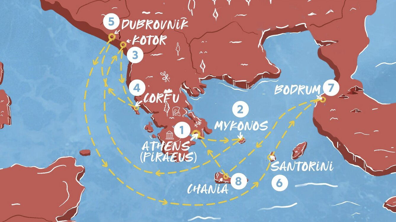 The lush and verdant island of Corfu lies in the Ionian Sea, midway between Greece and Italy. It is an island of sparkling beaches, mountains splashed with wildflowers, and historical, perched fortresses. Ships will dock at the town of Corfu.