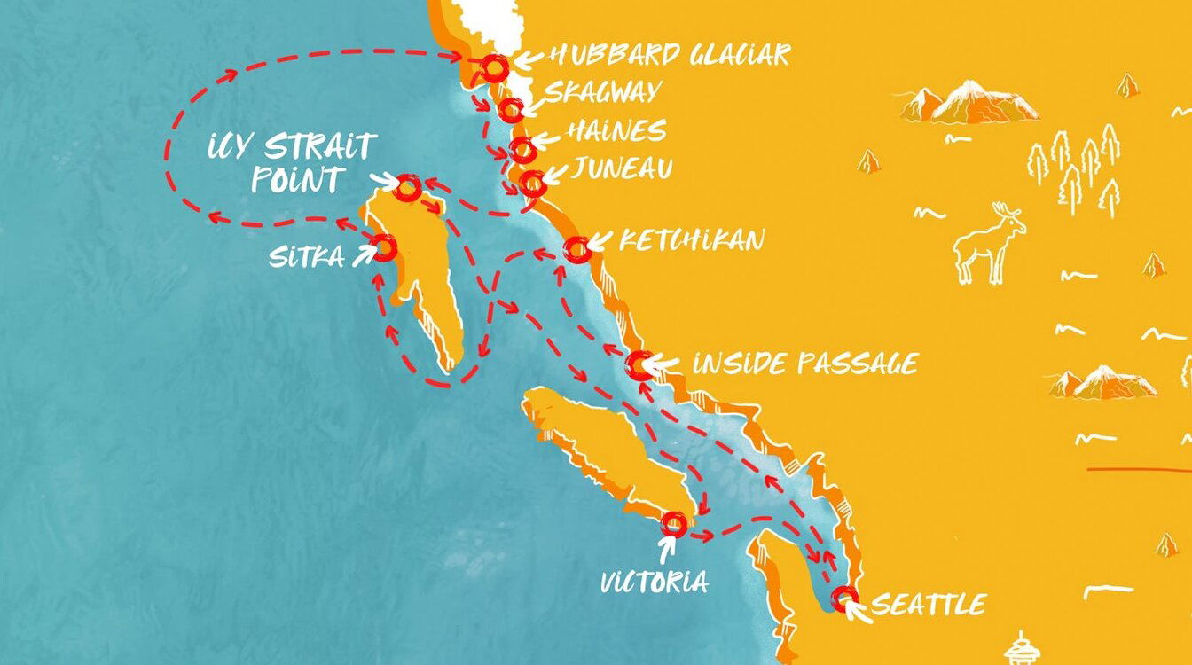 Alaska's Inside Passage offers breathtaking views of glaciers, fjords, and abundant wildlife , making it one of the most scenic cruises in the world and one of the few locations where deep-draft ships can sail close to steep mountain walls. Stretching from Puget Sound in Washington to the Alaskan Panhandle, this coastal route provides stunning natural scenery. Expect to see orcas, humpback whales, and sea lions from the deck, while eagles soar overhead.