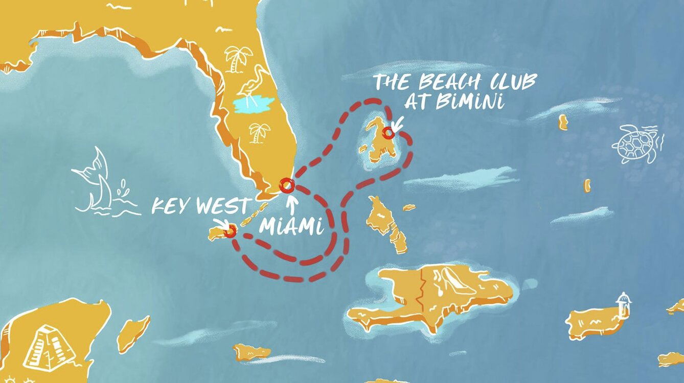The Beach Club at Bimini is a private destination exclusive to Virgin Voyages guests. Located in the Bahamas, Bimini Island is known for its long white sand beaches and crystal clear water.