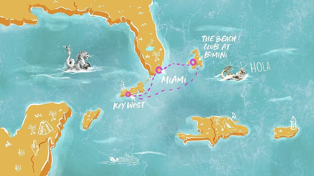The Beach Club at Bimini is a private destination exclusive to Virgin Voyages guests. Located in the Bahamas, Bimini Island is known for its long white sand beaches and crystal clear water.