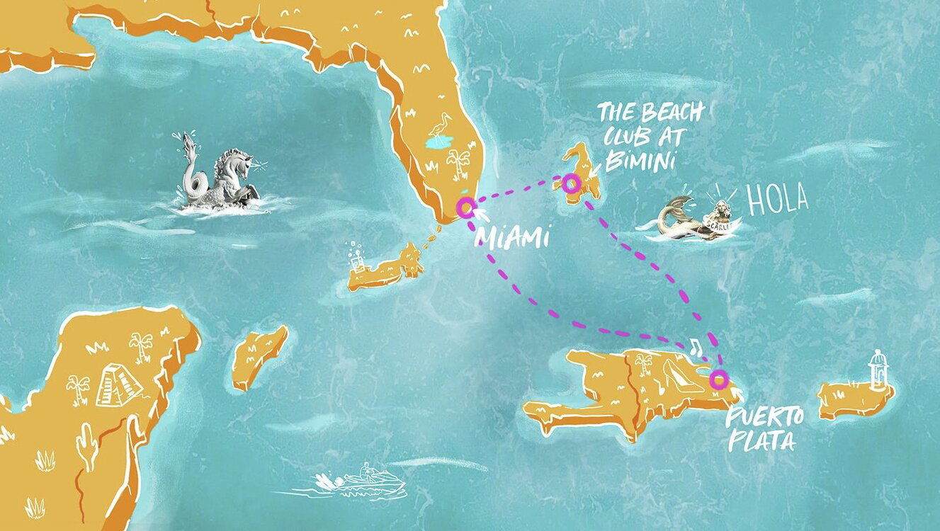 The Beach Club at Bimini is a private destination exclusive to Virgin Voyages guests. Located in the Bahamas, Bimini Island is known for its long white sand beaches and crystal clear water.