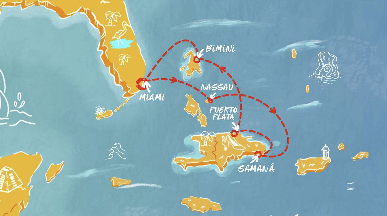 The Beach Club at Bimini is a private destination exclusive to Virgin Voyages guests. Located in the Bahamas, Bimini Island is known for its long white sand beaches and crystal clear water.