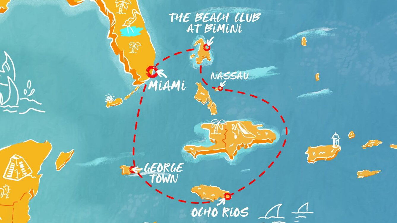 The Beach Club at Bimini is a private destination exclusive to Virgin Voyages guests. Located in the Bahamas, Bimini Island is known for its long white sand beaches and crystal clear water.