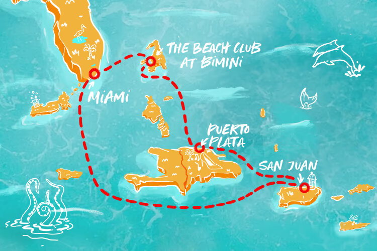 The Beach Club at Bimini is a private destination exclusive to Virgin Voyages guests. Located in the Bahamas, Bimini Island is known for its long white sand beaches and crystal clear water.
