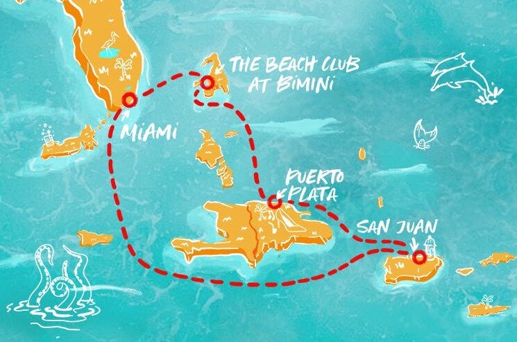 The Beach Club at Bimini is a private destination exclusive to Virgin Voyages guests. Located in the Bahamas, Bimini Island is known for its long white sand beaches and crystal clear water.