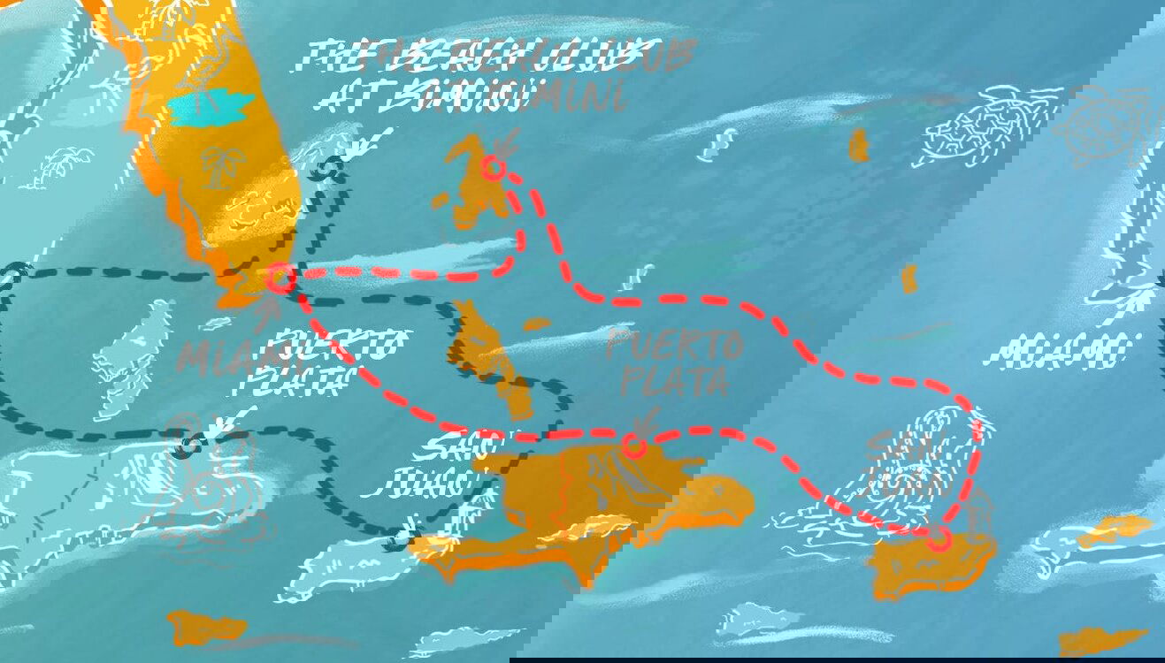 The Beach Club at Bimini is a private destination exclusive to Virgin Voyages guests. Located in the Bahamas, Bimini Island is known for its long white sand beaches and crystal clear water.