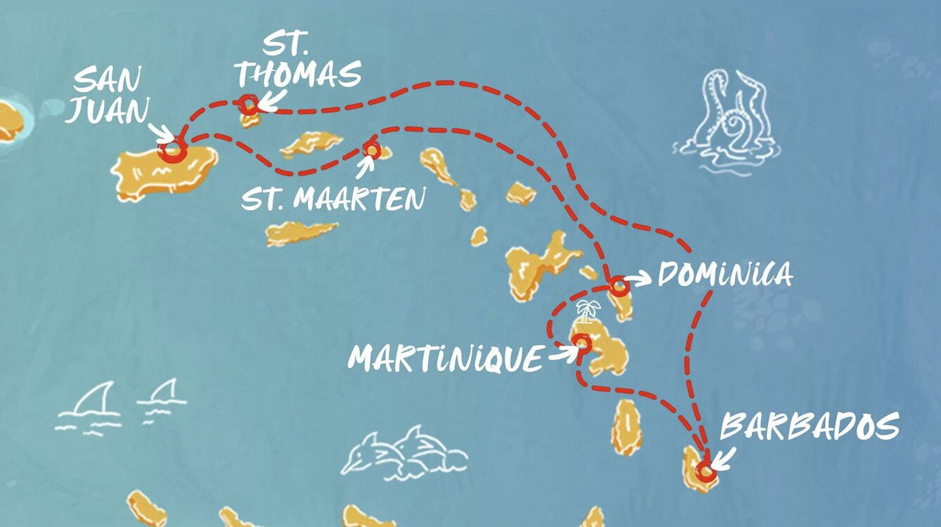 The capital of Dominica, Roseau is a small town with plenty of colonial charm. Its surrounds are lush and mountainous, rich rainforest embraces rare bird species, crater lakes, bubbling hot springs and splendid tumbling cascades. Ships will dock at this port.