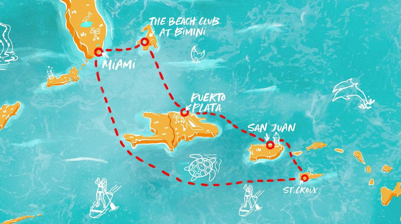 The Beach Club at Bimini is a private destination exclusive to Virgin Voyages guests. Located in the Bahamas, Bimini Island is known for its long white sand beaches and crystal clear water.
