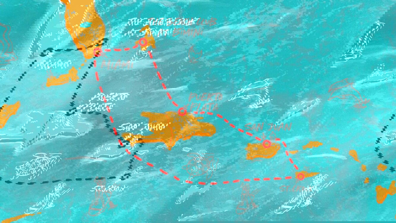The Beach Club at Bimini is a private destination exclusive to Virgin Voyages guests. Located in the Bahamas, Bimini Island is known for its long white sand beaches and crystal clear water.