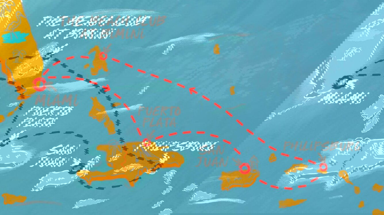 The Beach Club at Bimini is a private destination exclusive to Virgin Voyages guests. Located in the Bahamas, Bimini Island is known for its long white sand beaches and crystal clear water.