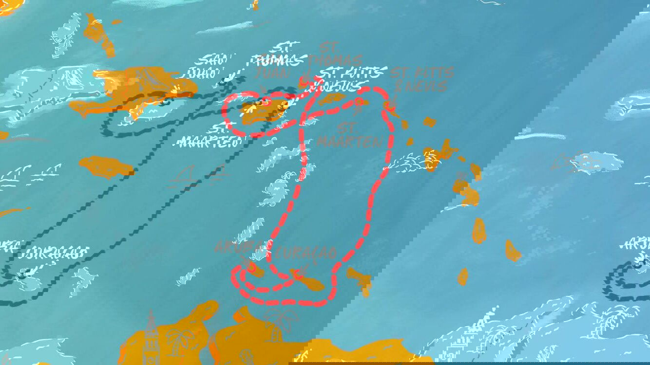 Dutch influence still lingers on this balmy Caribbean island, part of the former Netherlands Antilles until its independence in 1986. Aruba is a contrast, the island's arid interior is dotted with cactus and windswept divi-divi trees while secluded coves and sandy beaches make up its coast.