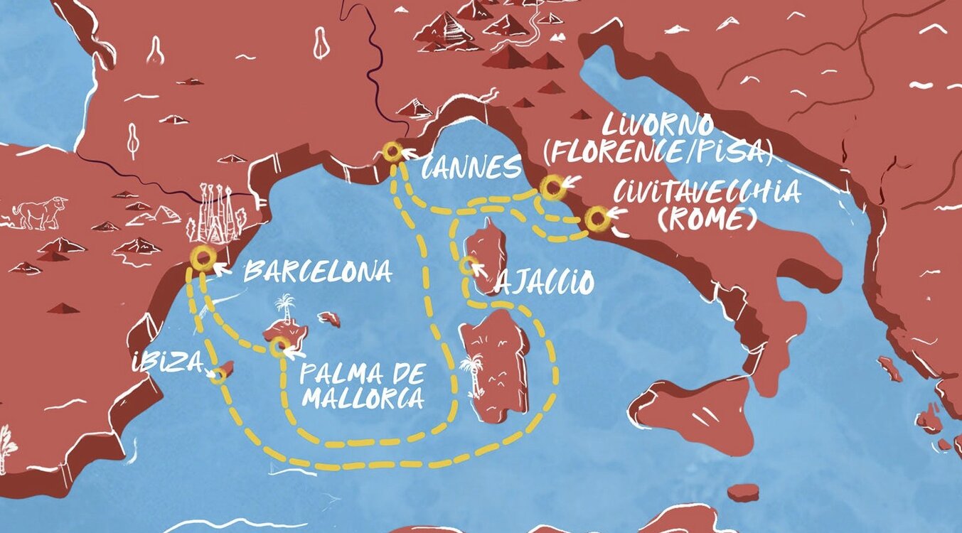 The quintessential Côte d'Azur resort town, Cannes has long been a playground for the rich and famous. Its epicentre is La Croisette, a boutique-lined boulevard with a legendary seven-mile beach. Ships will anchor offshore and tenders will be provided to the shore.
