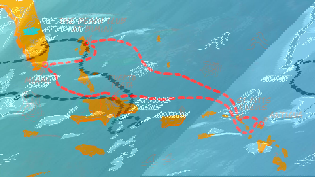 The Beach Club at Bimini is a private destination exclusive to Virgin Voyages guests. Located in the Bahamas, Bimini Island is known for its long white sand beaches and crystal clear water.