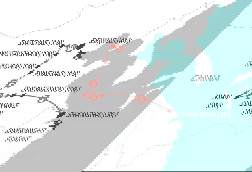 Travel by bullet train to Datong, watching the rural splendour of China pass by your window. Known for its abundant historical relics and natural beauty, upon arrival visit the UNESCO World Heritage Site of Yungang Caves where you will see the well-preserved rock carvings from the surrounding sandstone cliffs. Today, it is one of the three most famous ancient Buddhist cultural sites of China. (B/L/D)
