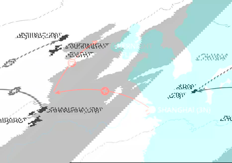Fly to the cosmopolitan city of Shanghai, also known as the 'Paris of the East'. Depending on your time of arrival, the rest of the day is yours to start soaking up the local culture. (D)