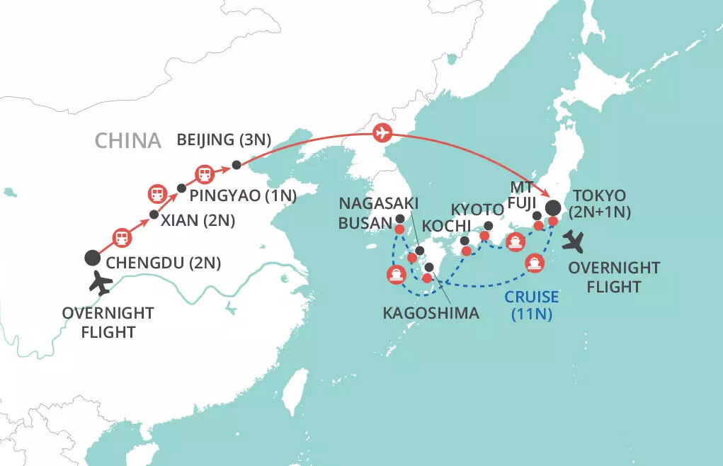 Bid farewell to China and board a flight to Tokyo, capital of Japan. On arrival, you will be transferred to your hotel and have the rest of the day at leisure. (B/L/D)