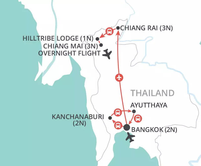 Fly to the vibrant city of Bangkok and be transferred transfer approximately 1 hour to your hotel. Depending on your time of arrival the rest of the day is yours to start soaking up the local culture. (D)