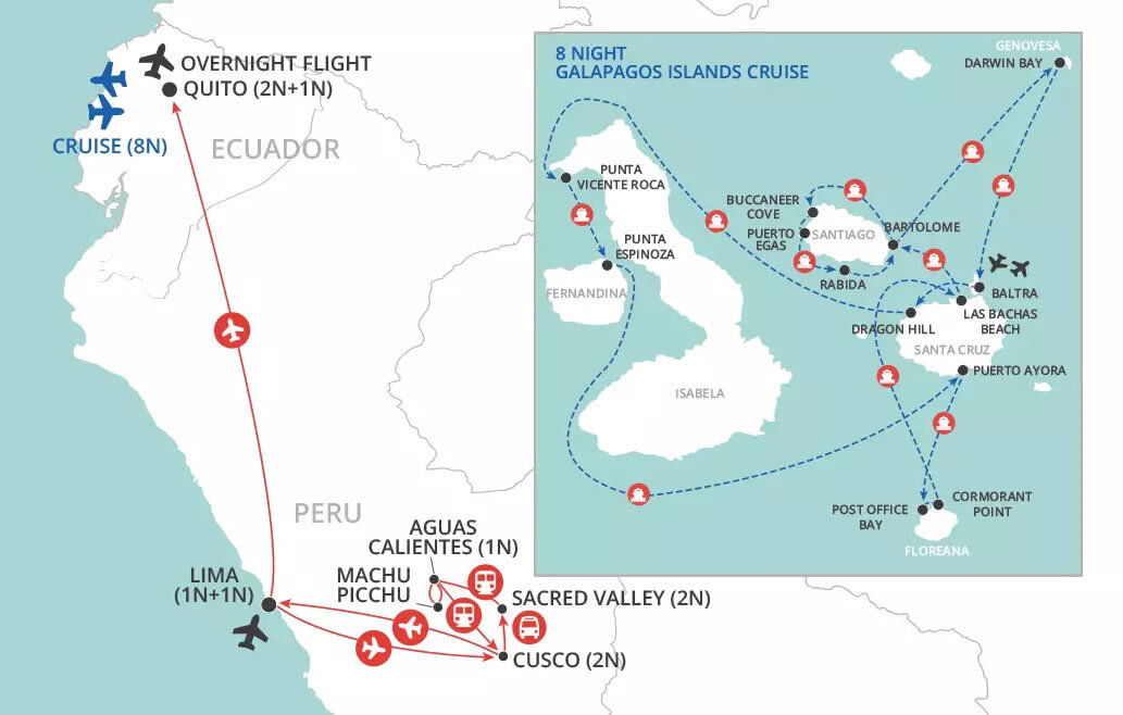 The final morning of the adventure is spent on the north shore of Santa Cruz Island, where you'll head into the lush highlands to see giant tortoises in their natural habitat, and walk among Galapagos daisies, orchids and bromeliads. Disembark the MS Santa Cruz II and transfer to Baltra Airport for your flight to Quito. (B/L/D)