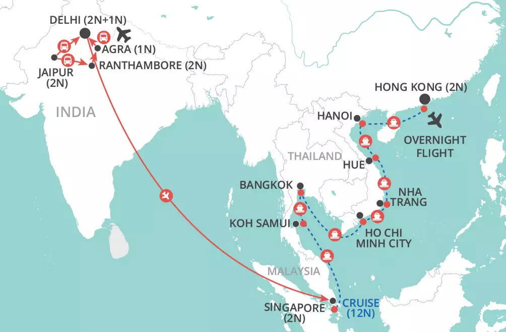 After breakfast you will be met by an English-speaking guide and transferred to Singapore's cruise terminal to board your cruise. The rest of the day is free to explore the ship's facilities and settle in. Throughout your cruise, when your ship comes into port, there will be a range of excursions available to help you explore each destination. These excursions are at your own expense and are bookable on your cruise reservation. (B/L/D)